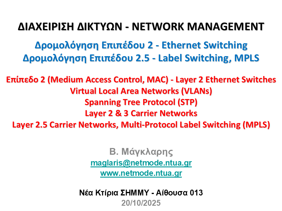 Δρομολόγηση Επιπέδου 2 – Ethernet Switching Δρομολόγηση Επιπέδου 2.5 – Label Switching, MPLS – 23/10/2025